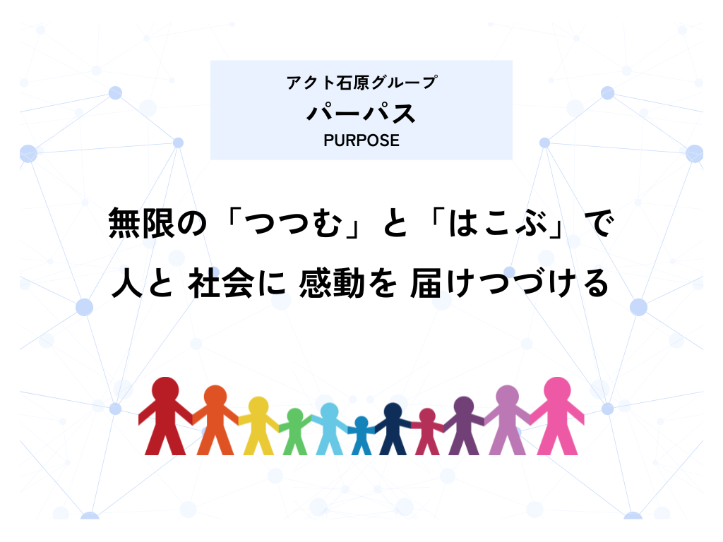 当社は創業100年という大きな節目を迎えた2024年に、アクト石原グループの企業活動の 志・約束 を示した『パーパス』を策定いたしました。
